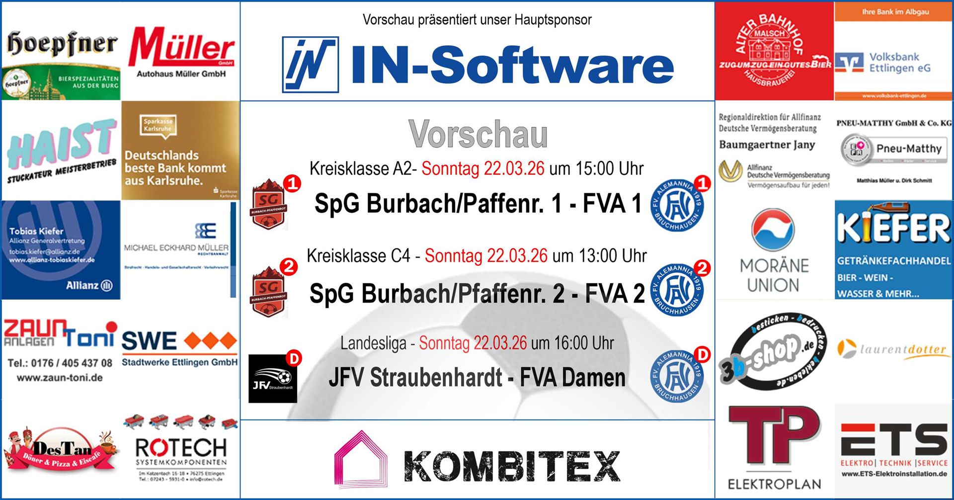 Nachdem der FVA am letzten Wochenende sein erstes Spiel im Jahr 2026 gegen Tabellenführer FC Jöhlingen mit 3:1 gewann steht nun am Sonntag, 22.03.26 um 15.00 Uhr das nächste Spiel gegen eine Mannschaft aus den Top 4 an, denn man reist (laut Fussball.de) zur SpG Burbach/Pfaffenrot in den Corthum Sportpark Marxzell (Pfaffenrot).