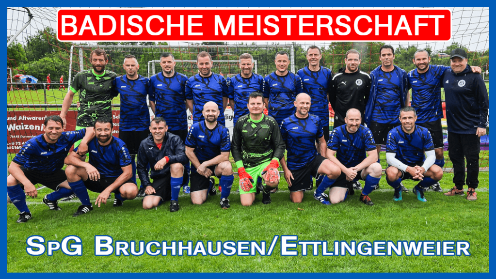 Bei strömenden Regen ließen die Ü40-Kicker aus Bruchhausen und Ettlingenweier der Konkurrenz aus Heidelberg, Mannheim und Bruchsal keine Chance und gewannen die Badische Meisterschaft auf dem Sportgelände des FV Ettlingenweier.