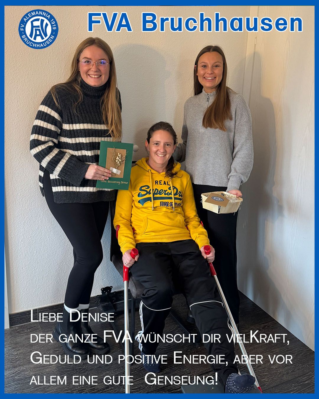 Im Spiel gegen den 1. FC Engelsbrand hat sich unsere Denise von den FVA Damen schwer verletzt und musste am Kreuzband sowie am Knorpel operiert werden. Die Operation ist gut verlaufen, dennoch wird der Heilungsweg lang und herausfordernd.
