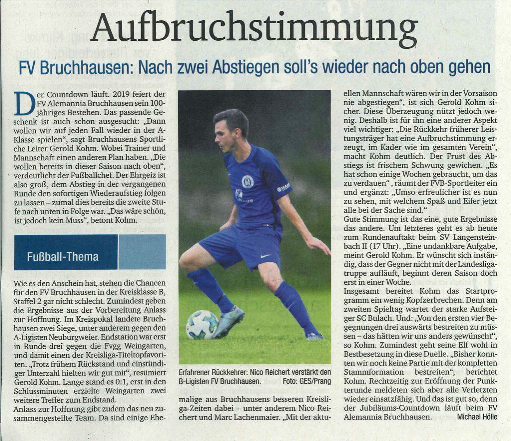 Der Countdown läuft. 2019 feiert der FVA Bruchhausen sein 100-jähriges Bestehen und das passende Present ist auch schon ausgesucht...