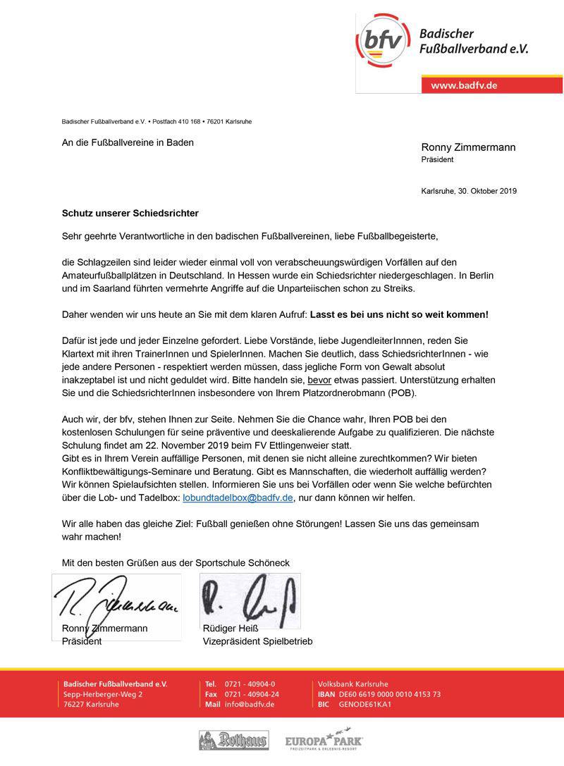 Ein Aufruf vom Badischen Fußballverband an alle Vereine und seine Mitglieder, ob aktiv oder passiv, auch an alle FANS der Vereine.