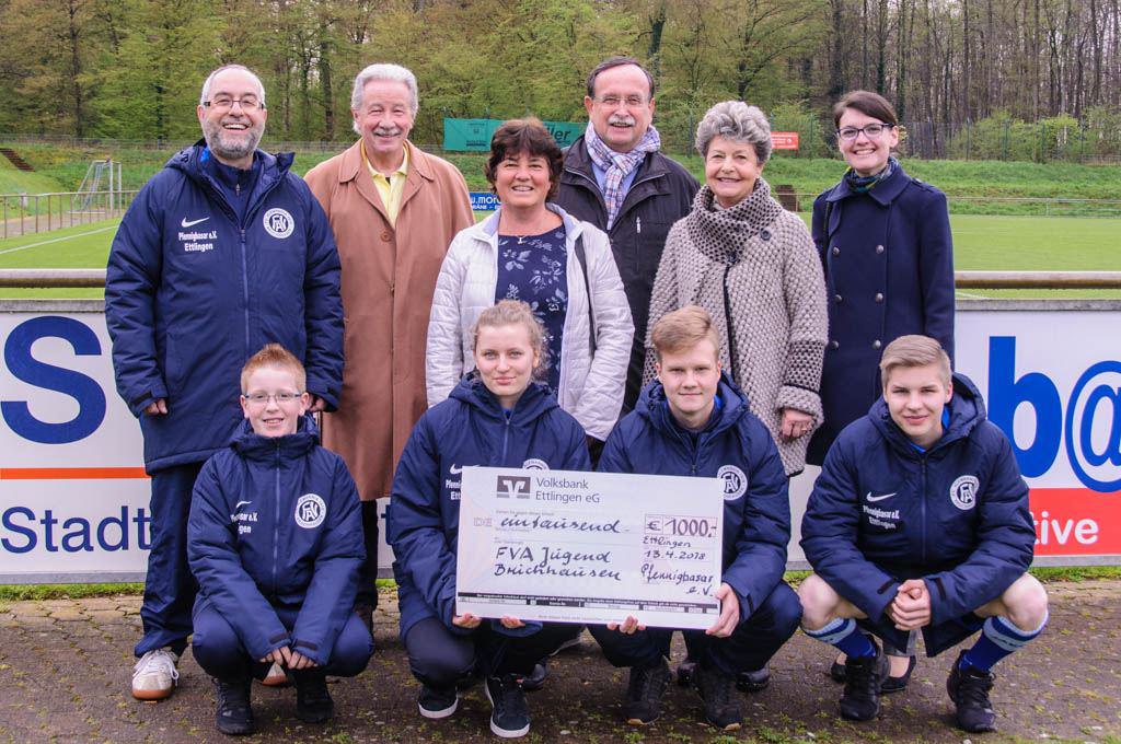 Die Jugendabteilung des FVA Bruchhausen bedankt sich beim Pfennigbasar Ettlingen e. V. für die großzügige Spende von 1000 Euro.