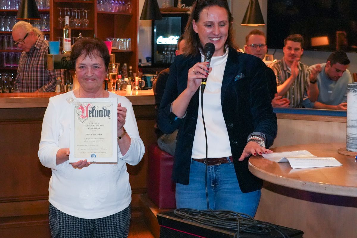 Nach dem Grußwort der Vorsitzenden A. Schälicke und nach einem hervorragenden Buffet (herzlichen Dank an das gesamte Team vom Clubhaus „Zur Alemannia“) standen u.a. diverse Dankesreden und Geschenkübergaben der Mannschaften an ihre Trainer und Betreuer auf dem Programm. !!