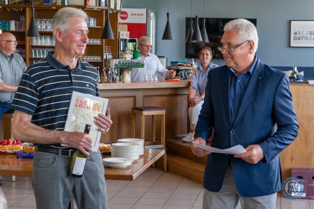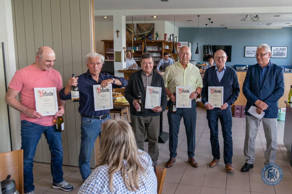 Am Samstag, den 07.05.2022 konnten nach den pandemiebedingten Ausfällen der letzten Jahre endlich die anstehenden Ehrungen verdienter Mitglieder nachgeholt werden. Bei Kaffee und Kuchen und nach Bild / Videovorträgen von Gerold Kohm konnte der Vereinsvorsitzende Werner Jany sich bei folgenden Mitliedern für jahrzehntelange Unterstützung bedanken und diese ehren.