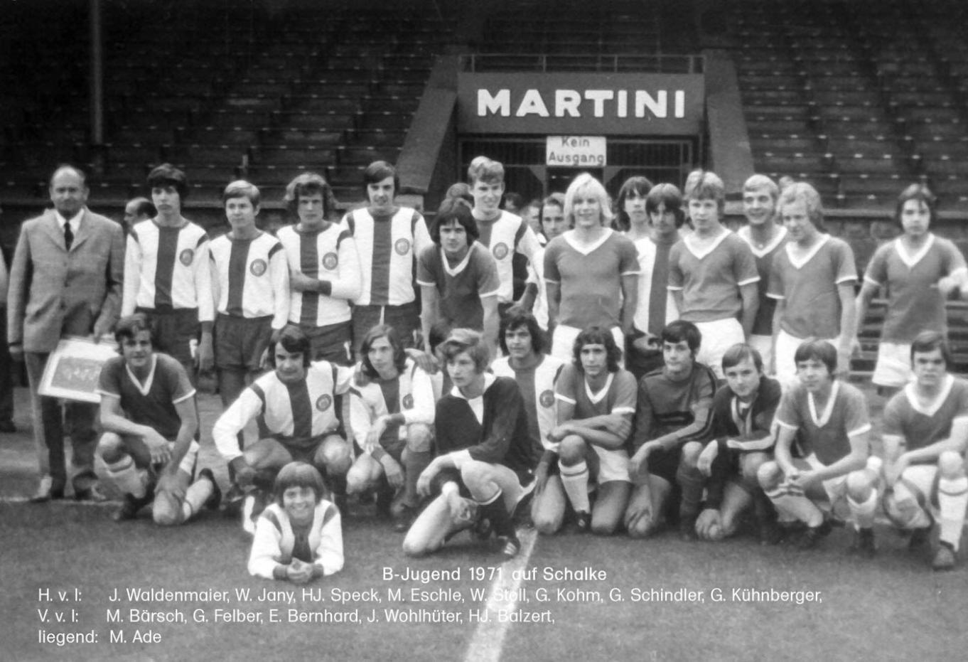 Die Familie unseres Ehrenmitglieds Klaus Schosser hatte bereits längere Zeit durch familiäre Bande sehr gute Kontakte zum Bundesligisten FC Schalke 04. Dieser sprach dann im Sommer 1971 eine Einladung zum Besuch eines Bundesligaspiels in Gelsenkirchen an unsere B-Jugendlichen aus.