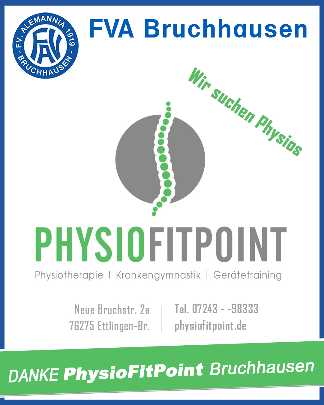 Der FV Alemannia Bruchhausen bedankt sich auch an dieser Stelle ganz herzlich bei der Firma PhysioFitPoint Lukas Kunz in Bruchhausen.