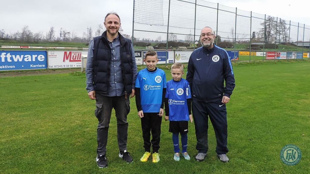 Die Jugendabteilung bedankt sich hierfür bei der Firma Eiermann aus Ettlingen. Auf dem Bild zu sehen Jugendvorstand Rolf Brendel mit Mark Eiermann und seinen Söhnen, die in den E- und F-Junioren spielen.