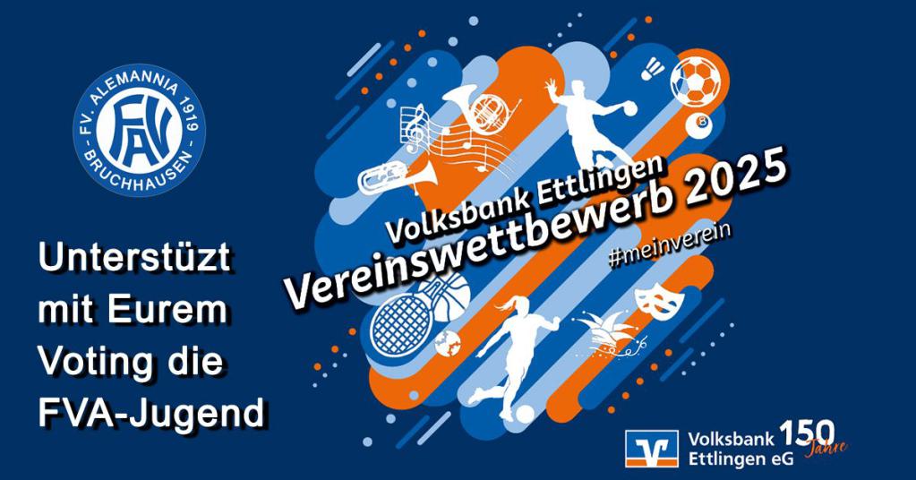 In der Zeit vom 07.07.25 bis 27.07.25 können Sie unseren FVA beim Vereinswettbewerb der Volksbank Ettlingen mit ihrer Stimme unterstützen. Für jede Stimme gibt es bares Geld für die Vereine –